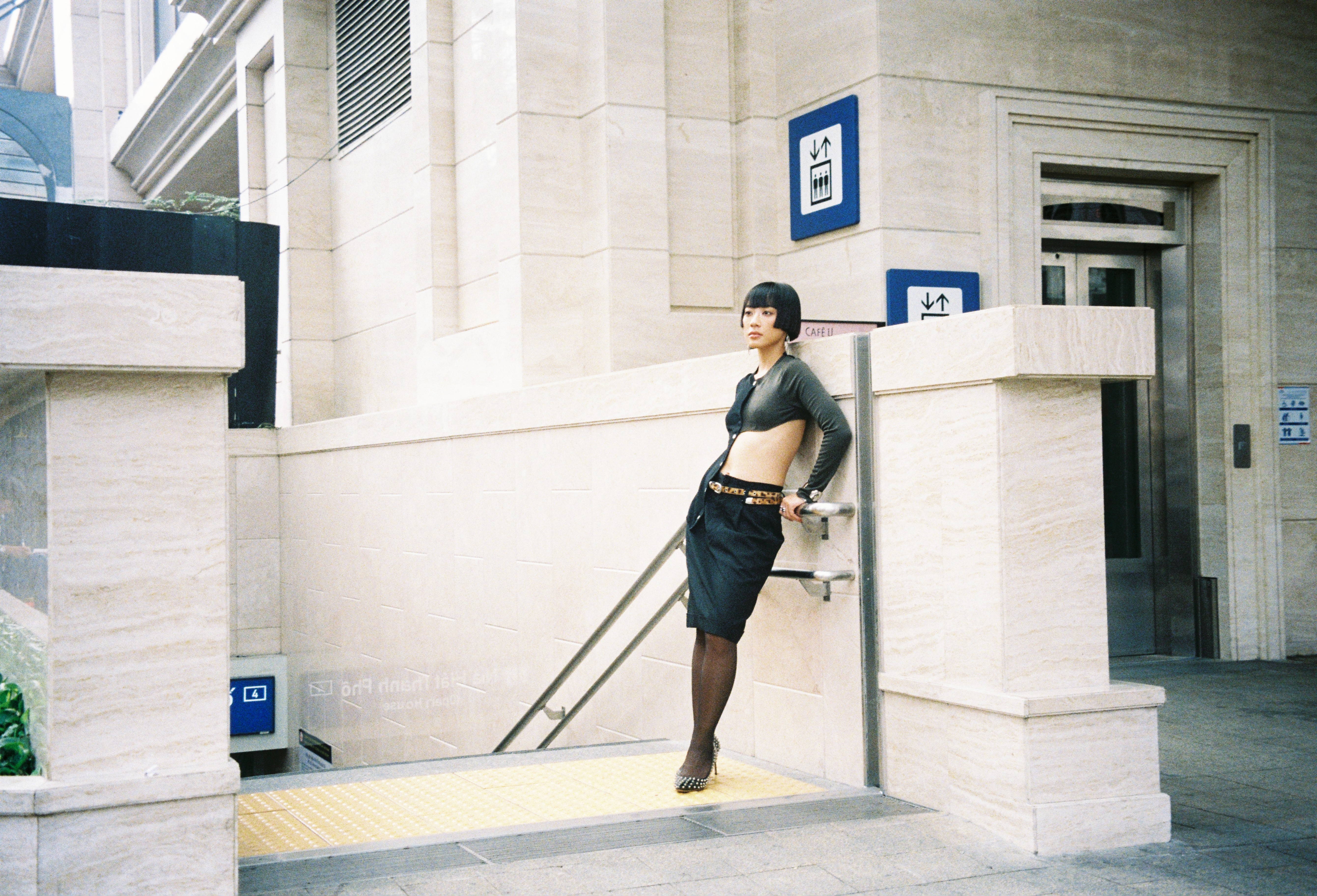 A single frame—a timeless fashion asserting its existence amidst the hustle and chaos of the city.